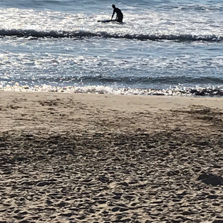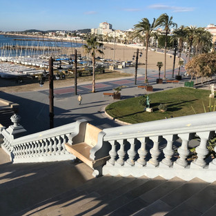 It was noon and the cafes were opening up. There were several to choose from, but as it was my last foray I chose the one with the white table cloths and stemware, situated right behind the very nice bronze statue of a woman, sans clothing, sitting looking out at the sea. A little tapas. A glass of wine. A coffee au lait (I have to stop doing that to my poor little body, but they are oh, so good!) I think I sat there for a good hour and a half plus. My nose got a bit sunburnt. I only had my shirt on at this point - I did have other clothing on too, but didn't need the jacket any more - just for clarification. The breeze blew. The boardwalk was lined with benches and chairs and people just sat, for very long periods of time, listening to the surf, soaking up the sun, and just….being.
